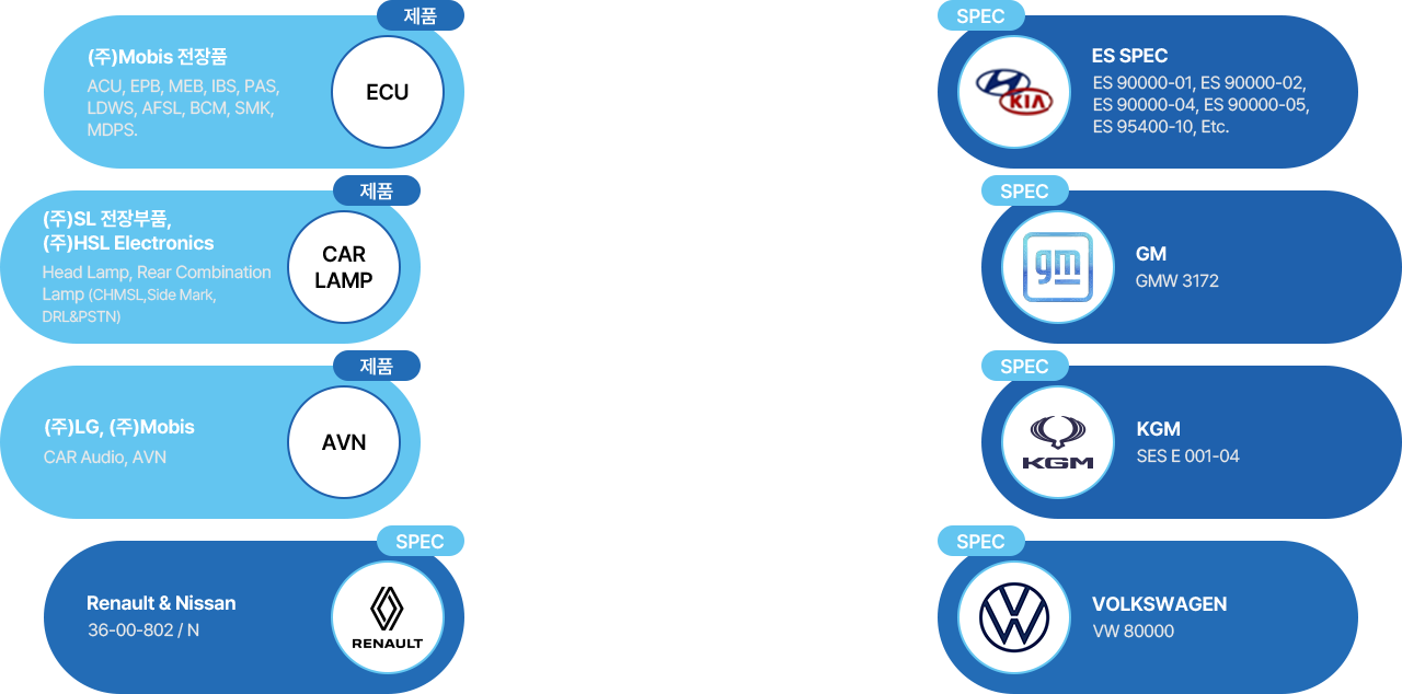 - 온도 특성 시험, 내액 시험, 내수 시험(외주), 염수 분무 시험(외주), 내 오존 시험(외주)